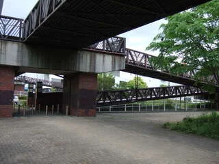 歩道橋脇の歩道