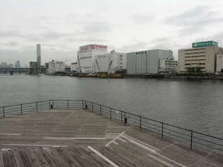 京浜運河沿いのウッドデッキ