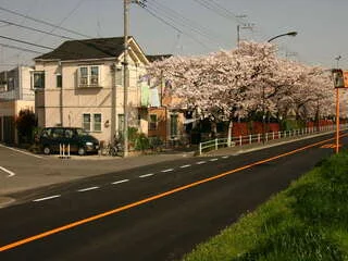 府中多摩川かぜのみち沿いのT字路