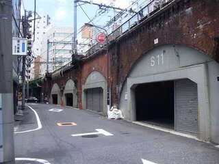 JR神田変電所付近のJR中央線高架沿いの通り
