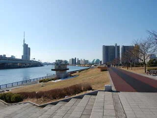 旧中川のふれあい橋近くの河川敷